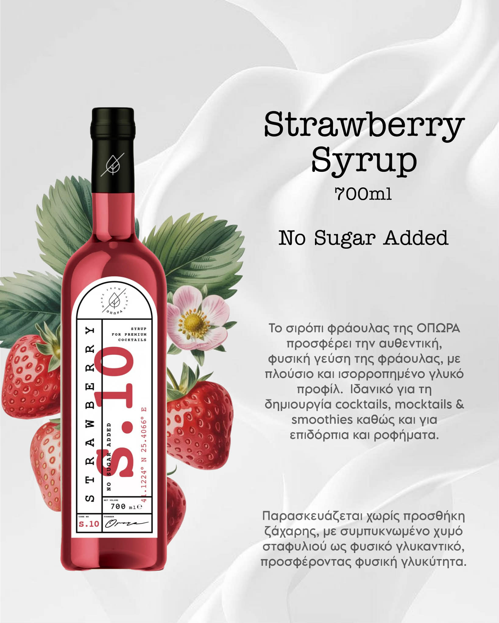 Το Premium Strawberry Syrup χωρίς προσθήκη ζάχαρης είναι ένα σύγχρονο, φρουτένιο syrup υψηλής ποιότητας, σχεδιασμένο για cocktails, mocktails και δημιουργικές γαστρονομικές εφαρμογές. Παρασκευάζεται με συμπυκνωμένο χυμό σταφυλιού ως φυσικό γλυκαντικό, προσφέροντας ισορροπημένη φυσική γλυκύτητα που αναδεικνύει τον αυθεντικό, ζουμερό χαρακτήρα της φράουλας.